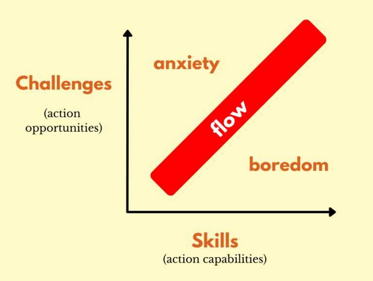 When the challenge that you pose to yourself and the skills that you have are matched- a flow is maintained, and you enjoy your work.